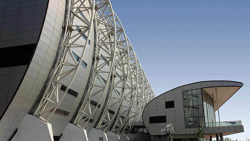 天津泰達足球場位于天津濱海新區,于2004年建成。足球場建筑面積6萬平方米,可容納3.7萬名觀眾,是迄今為止天津最現代化的足球比賽場地。墻面使用