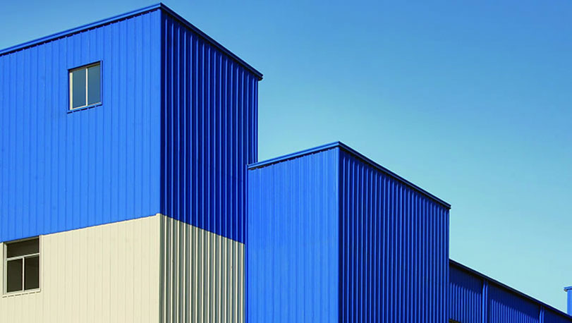 蕪湖美智空調(diào)設(shè)備位于蕪湖市經(jīng)濟(jì)開發(fā)區(qū),建成于2010年。是一家生產(chǎn)空調(diào)、冰箱的家電企業(yè)。屋面采用寶鋼鍍鋁鋅光板制造,牌號(hào)為S350GD+AZ,鋁鋅重量為165克/平方米。墻面采用寶鋼鍍鋁鋅氟碳彩涂鋼板,顏色為白灰、海藍(lán),鋁鋅層重量150克/平方米,牌號(hào)TS300GD+AZ。