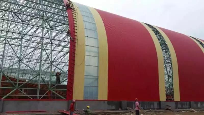 前期使用其他廠家彩涂產(chǎn)品,短時間內(nèi)多次發(fā)生銹蝕穿孔。后經(jīng)與寶鋼黃石公司聯(lián)系并邀請進行現(xiàn)場走訪,發(fā)現(xiàn)此批彩涂產(chǎn)品使用在煤氣發(fā)生爐區(qū)域,車間內(nèi)不僅屬高溫、高濕環(huán)境,還有二氧化硫等還原氣氛,鍋爐排放粉塵顆粒附著腐蝕較大,對產(chǎn)品耐蝕性提出更高的要求。經(jīng)與業(yè)主溝通,選用鍍鋁鋅基板,并提升背面膜厚及涂料種類(環(huán)氧改為氟碳涂層,背面漆膜≥20um),經(jīng)5年時間跟蹤,漆膜完整,大大增強了使用壽命,降低更換周期,得到業(yè)主認可。使用時間2013年,共計使用400噸。